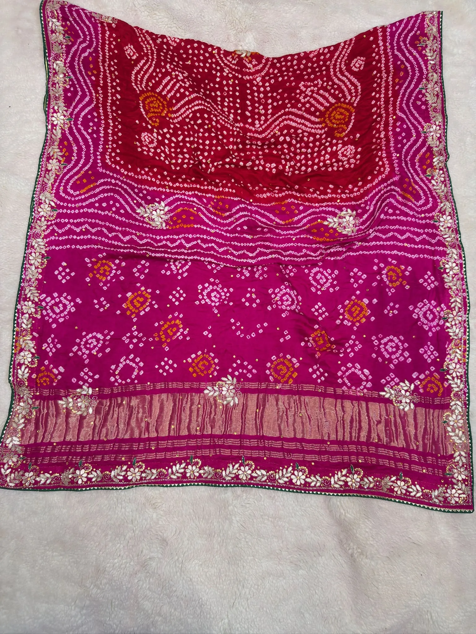 Elevate your ethnic look with this luxurious pure Gajji silk dupatta, designed in rich red and rani shades that symbolize festive elegance and royal charm. The smooth silk texture offers a graceful drape, while the vibrant dual-tone palette adds timeless appeal.