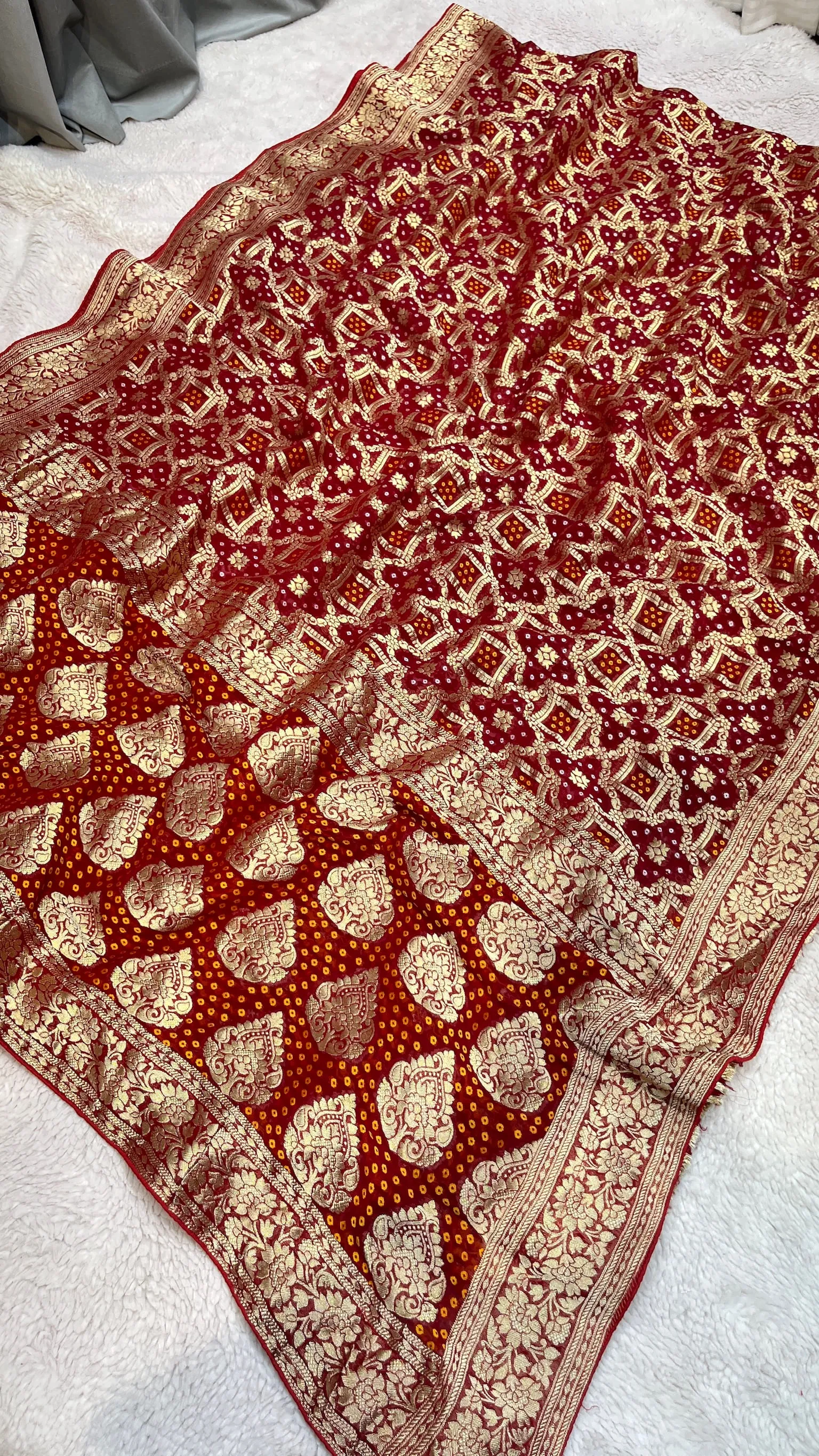 Luxury Pure Ojariya Dupatta Highlighted with kundan zardozi Gota patti work