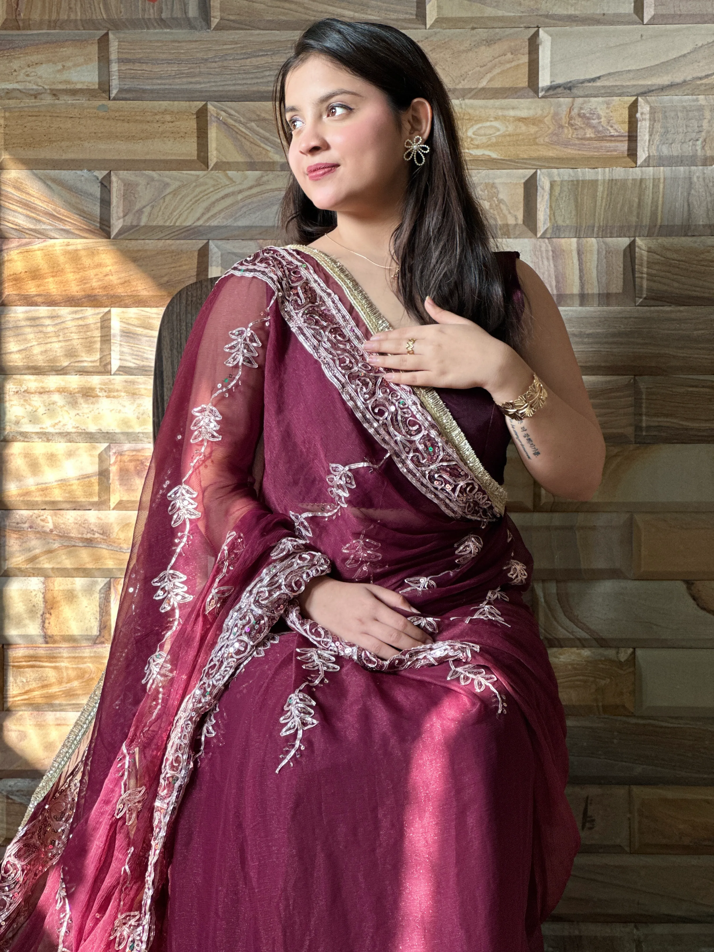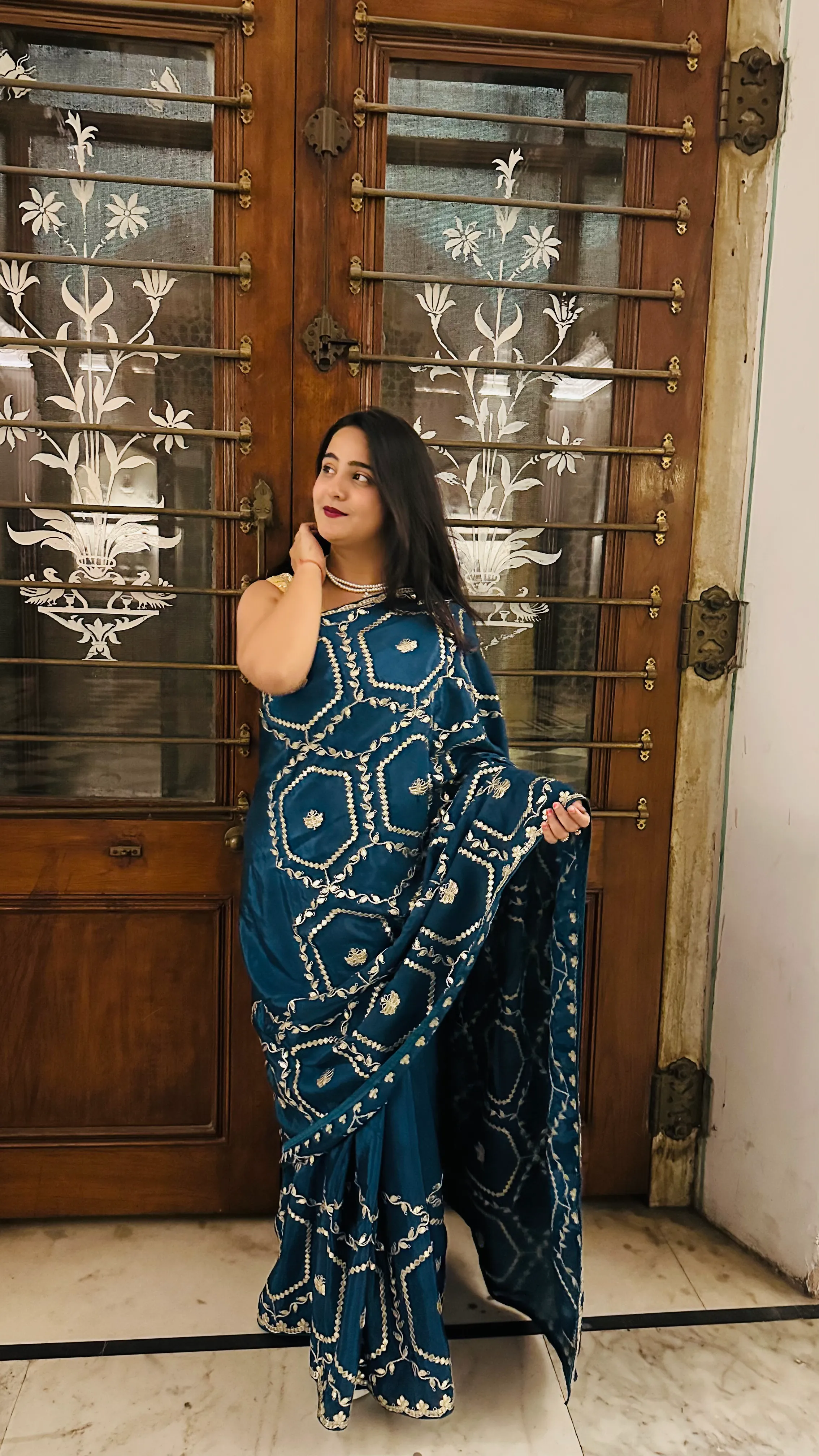 Handcrafted Pure Ojariya Crepe Bandhej Saree with Tie-Dye, Zardozi & Gotta Patti Embellishments