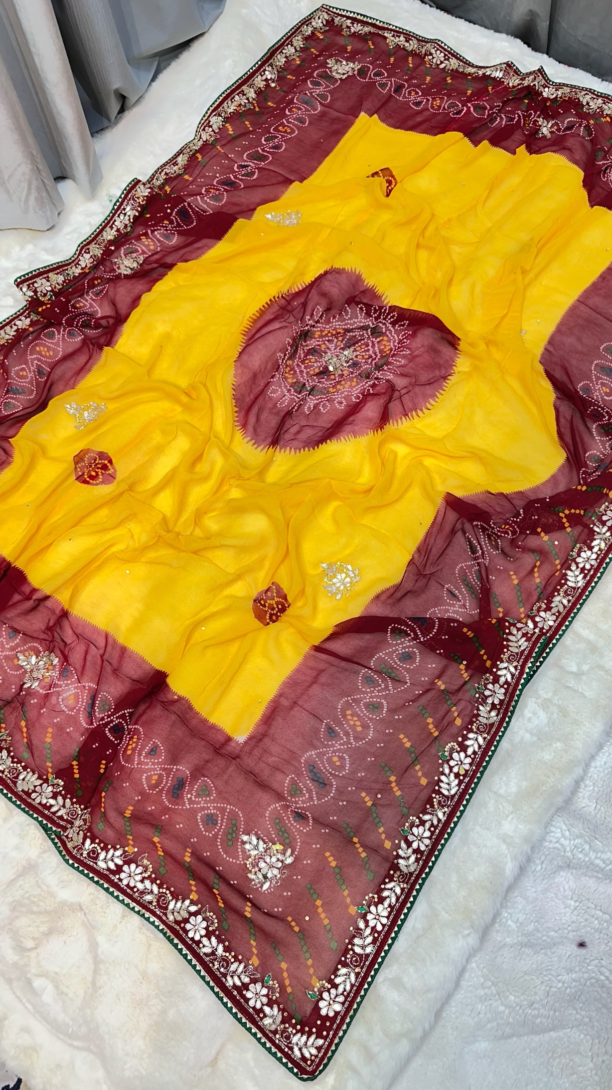 Traditional Lemon Pilla Odhna – Viscose Georgette Rajasthani Dupatta with Zardozi Kundan Pipe Patti Work
