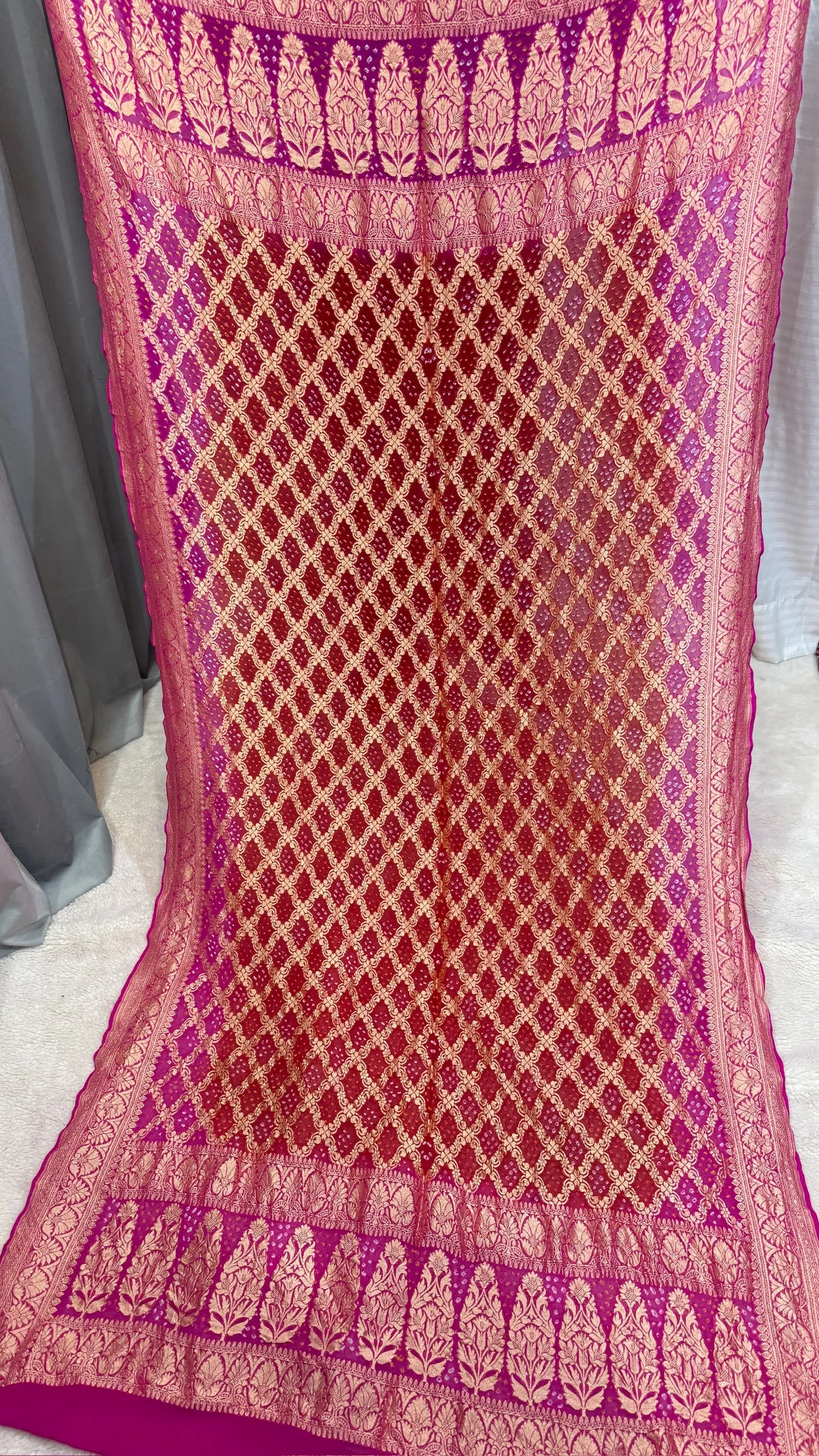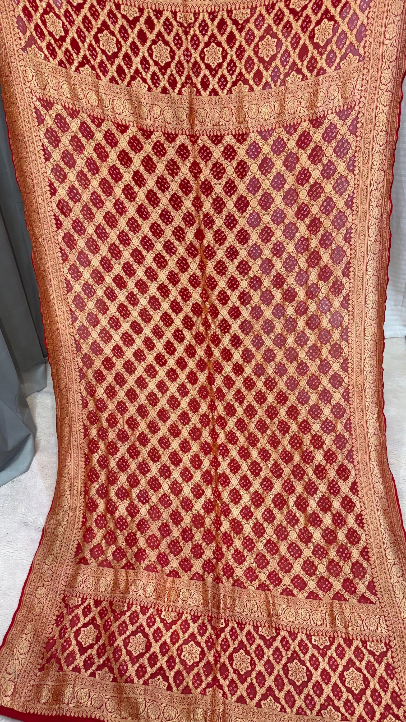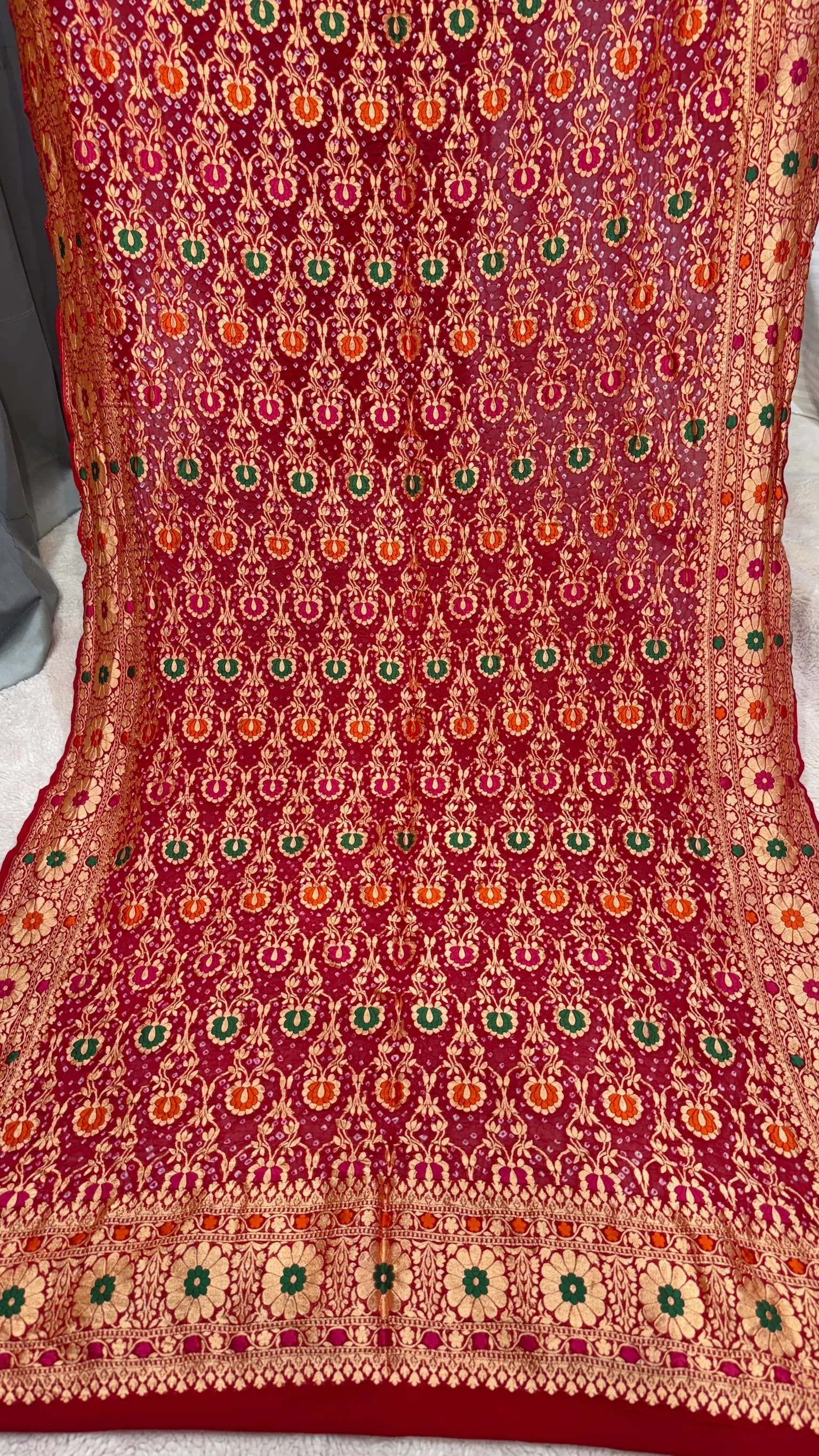 Premium Khadi Georgette Dupatta with Hand Bandhej Meena Zari Work in Two Colours