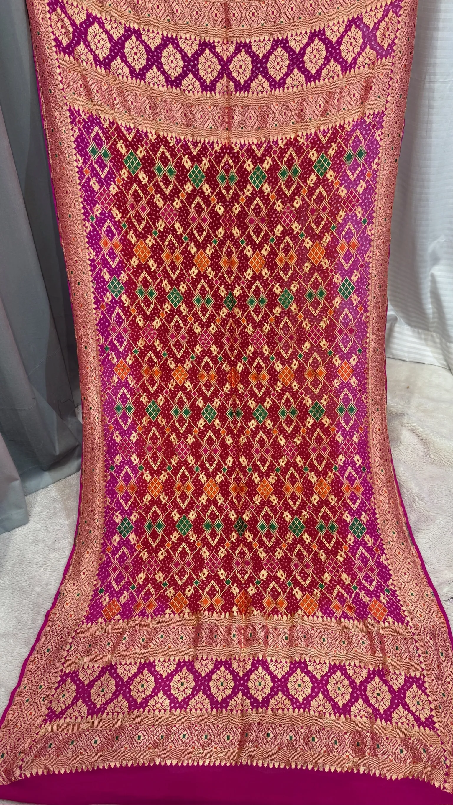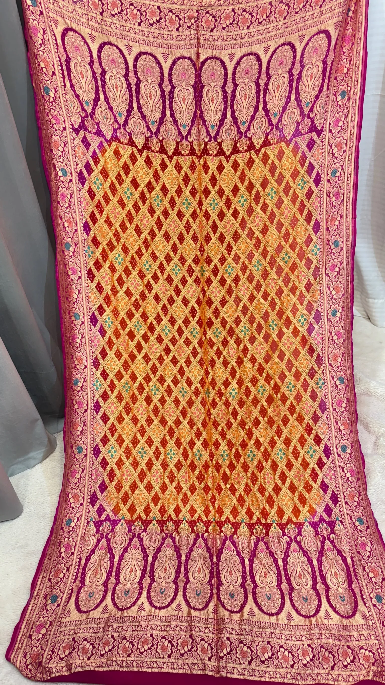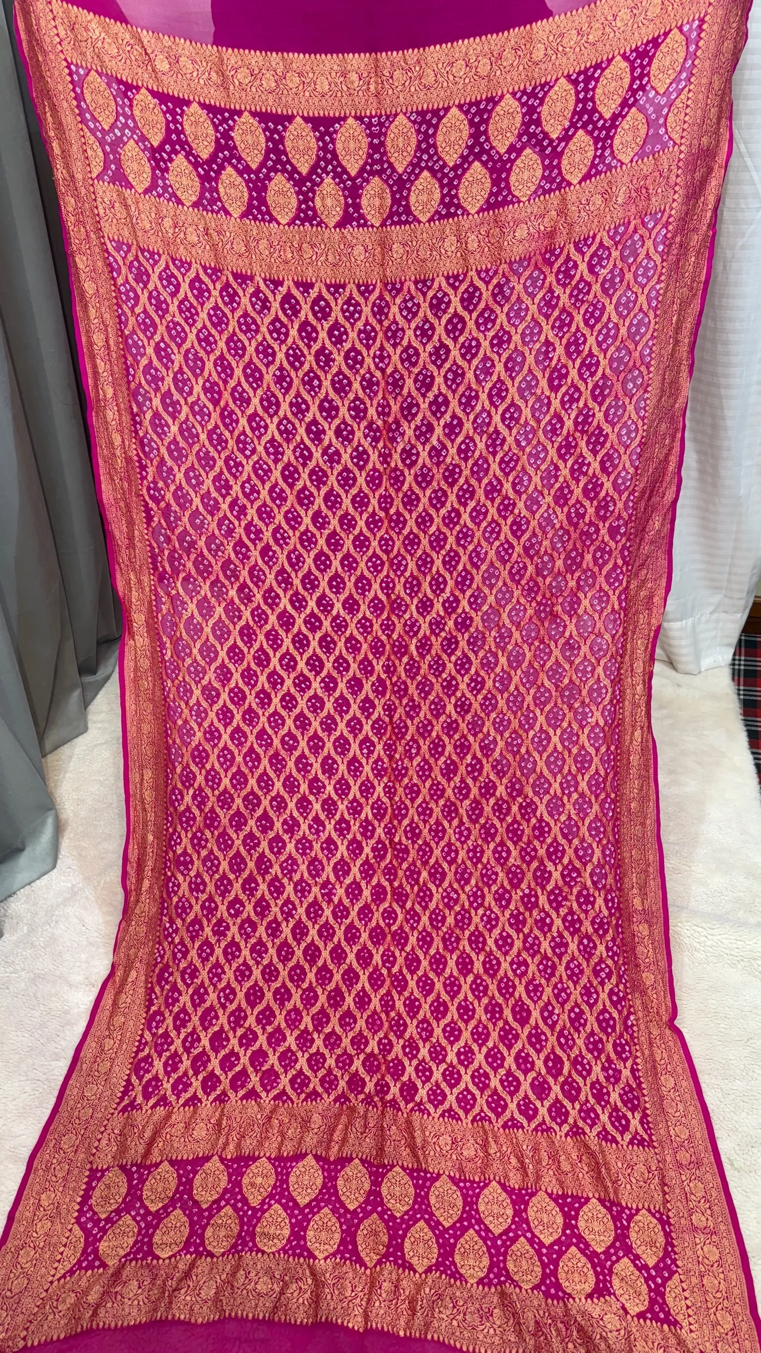 Premium Khadi Georgette Dupatta with Hand Bandhej Meena Zari Work in Two Colours