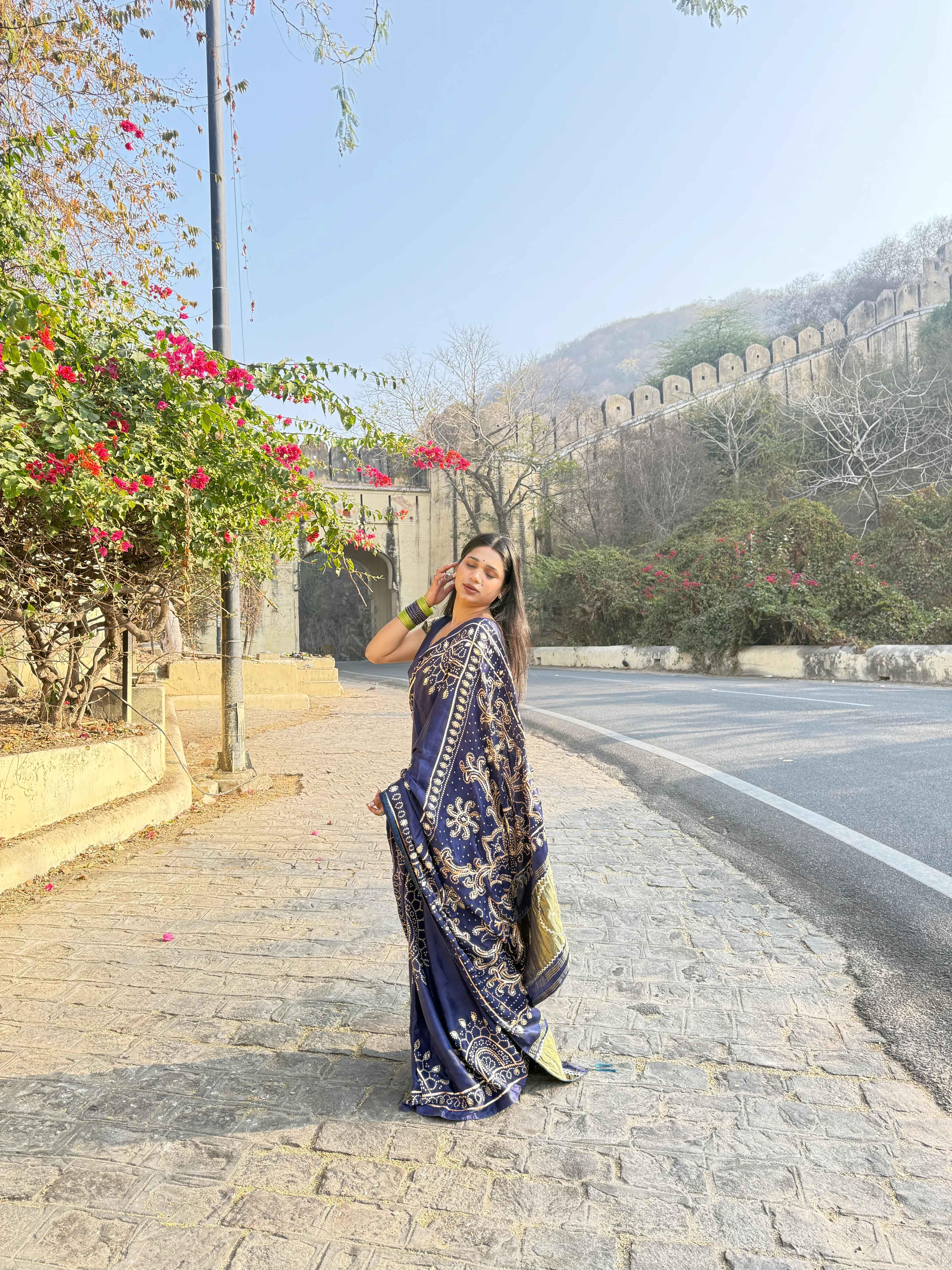 Elegant Fancy Bandhej Saree in Fine Georgette with Kacha Gotta Patti Work – Traditional Festive & Wedding Wear