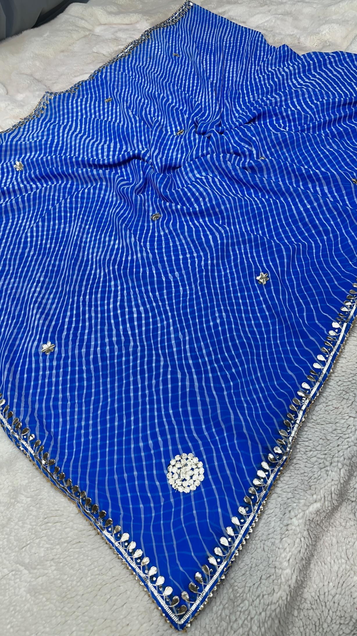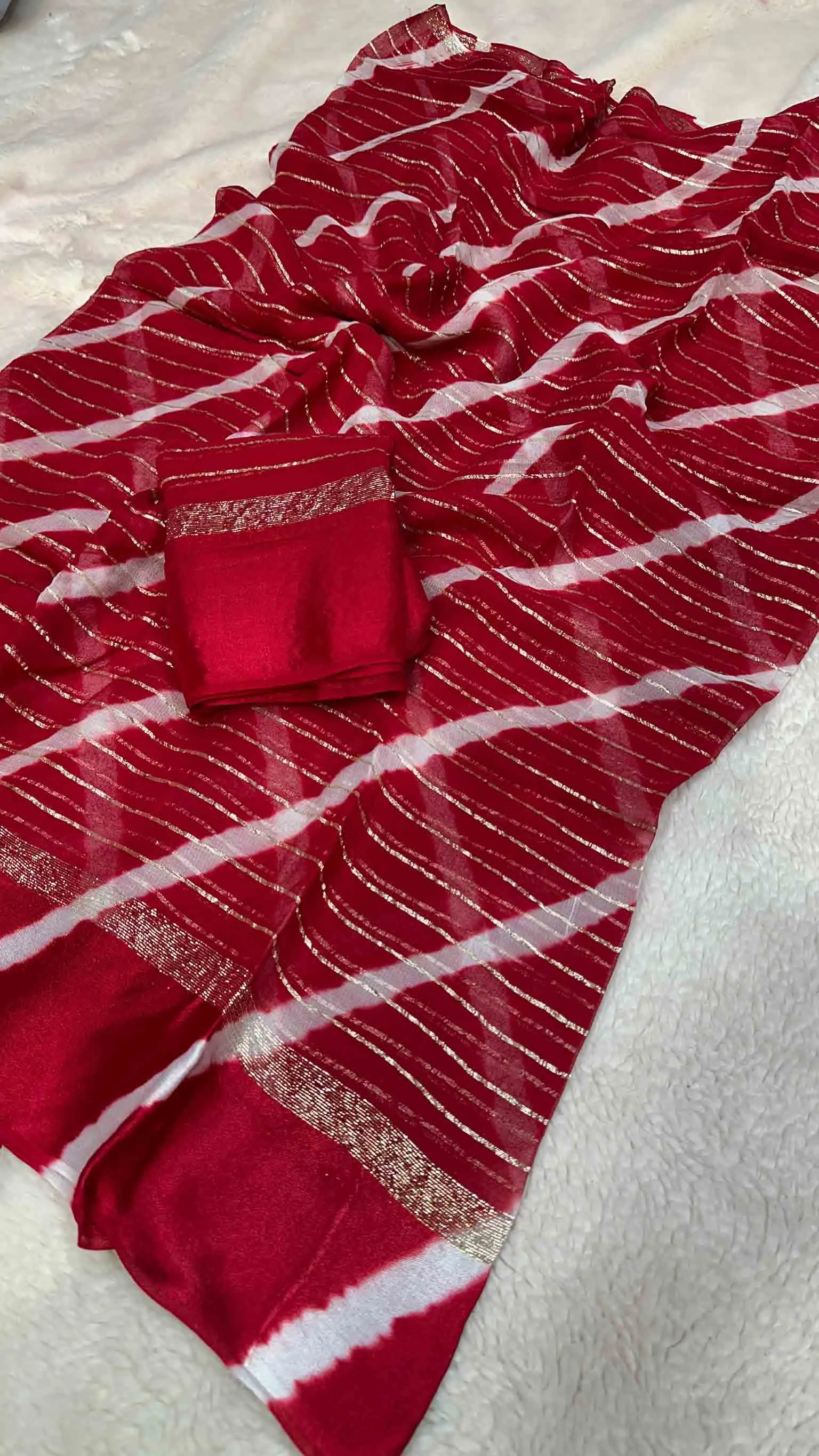 Elegant Lahriya Saree in Pure Viscose Georgette with Zari Weaving & Satin Patti Border – Trending Festive & Party Wear Saree