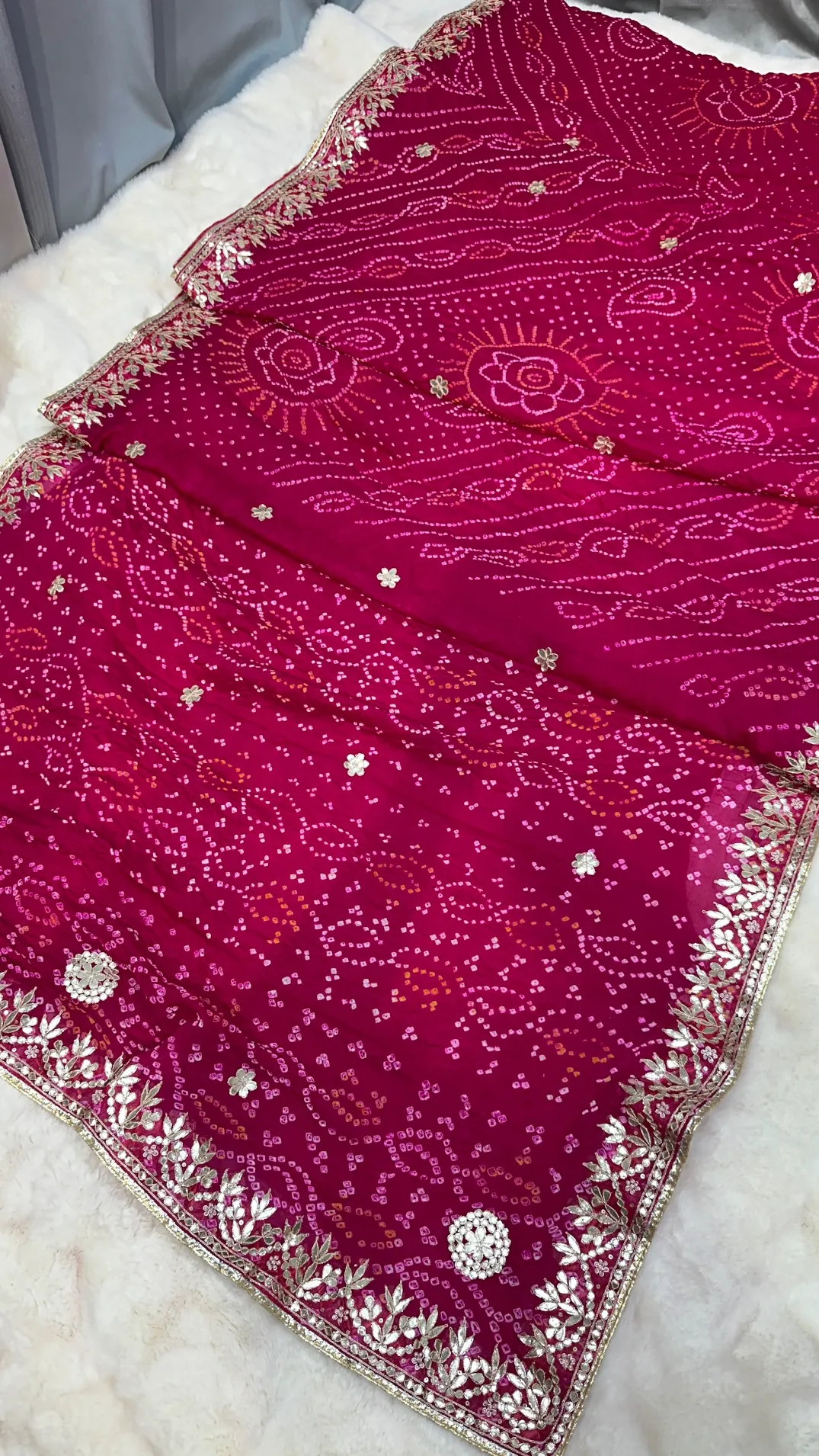 Bandhej saree pure ojariya crape fabric hand bandhej zardozi moti zero Gotta patti work