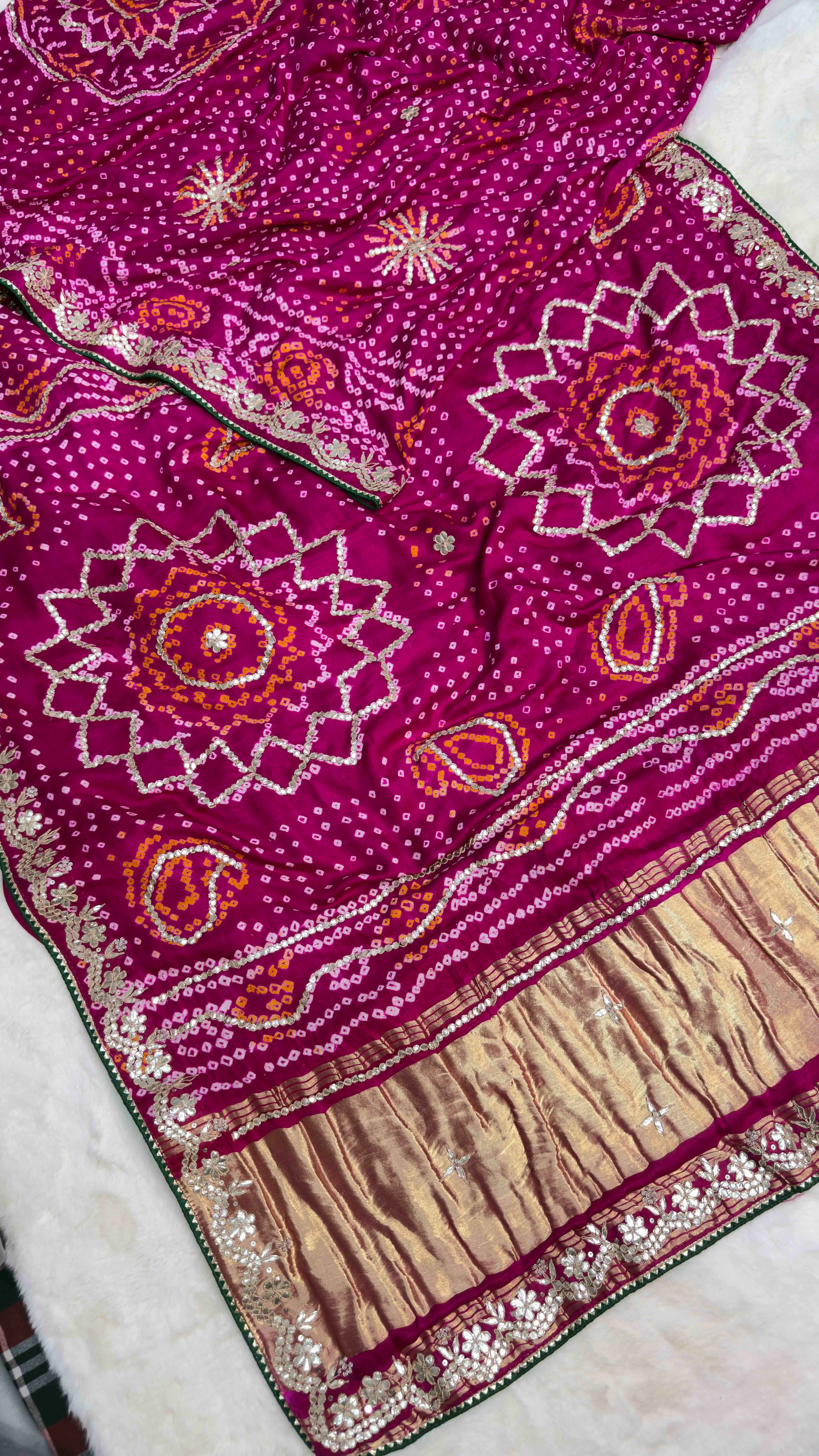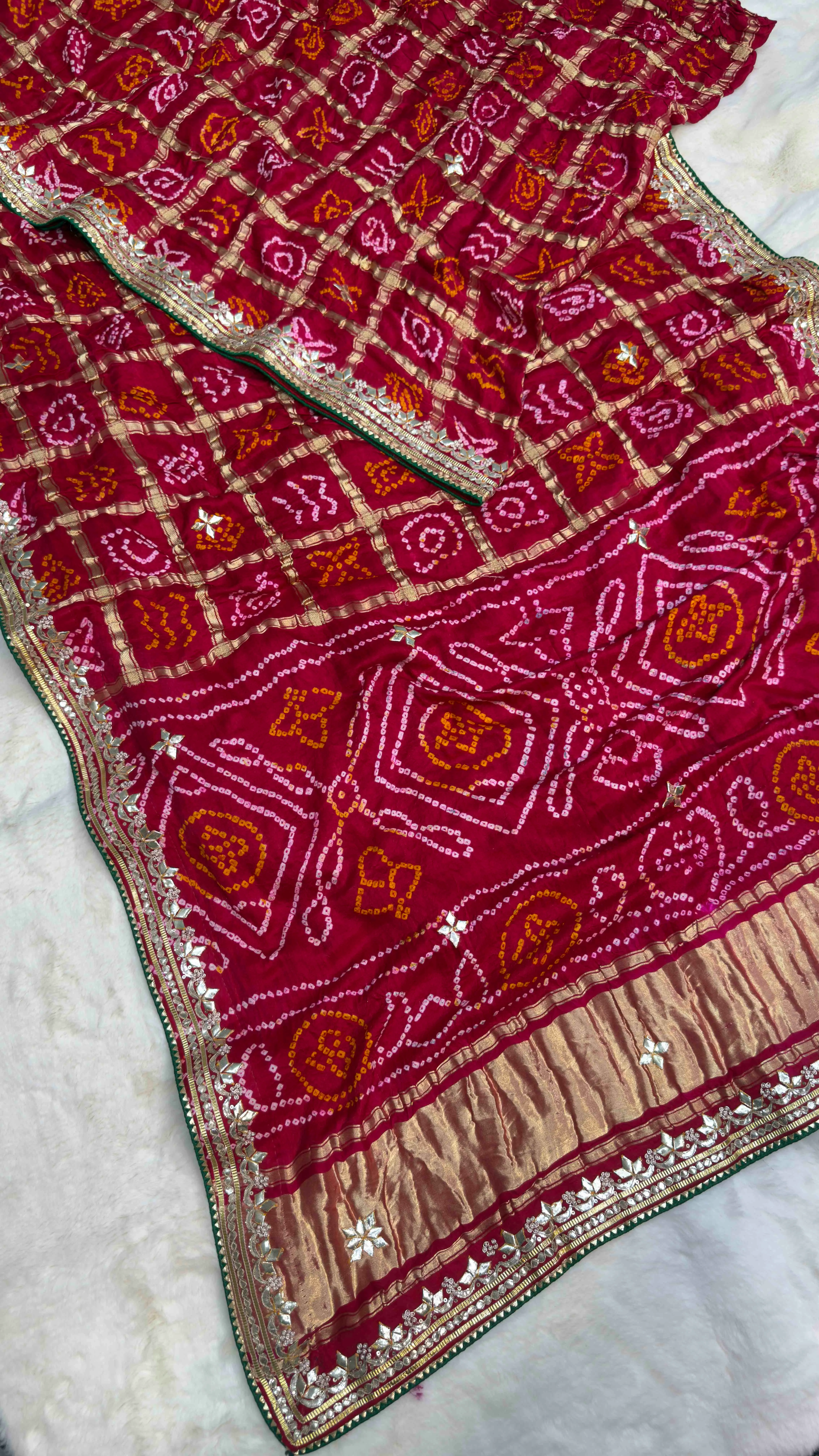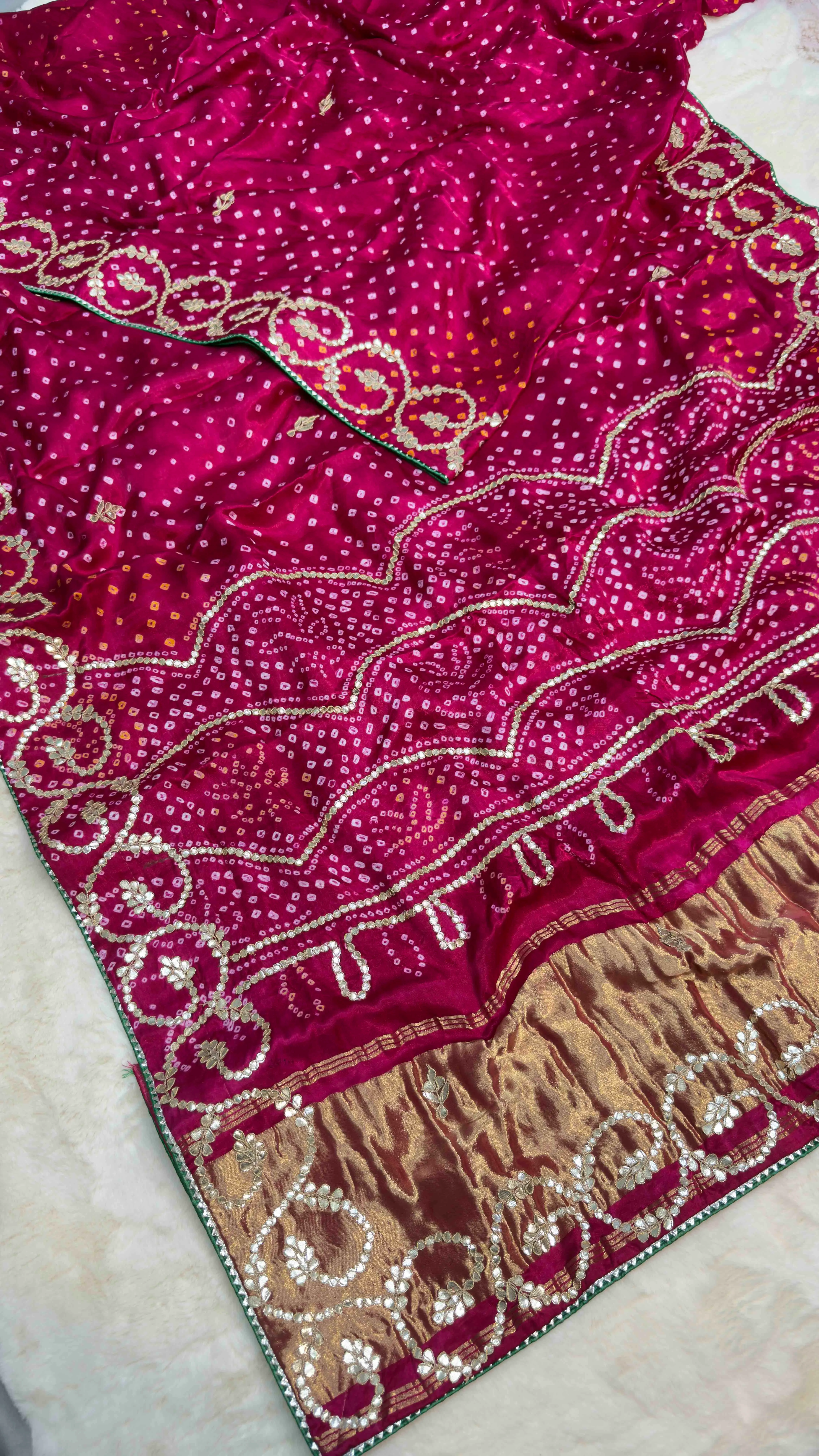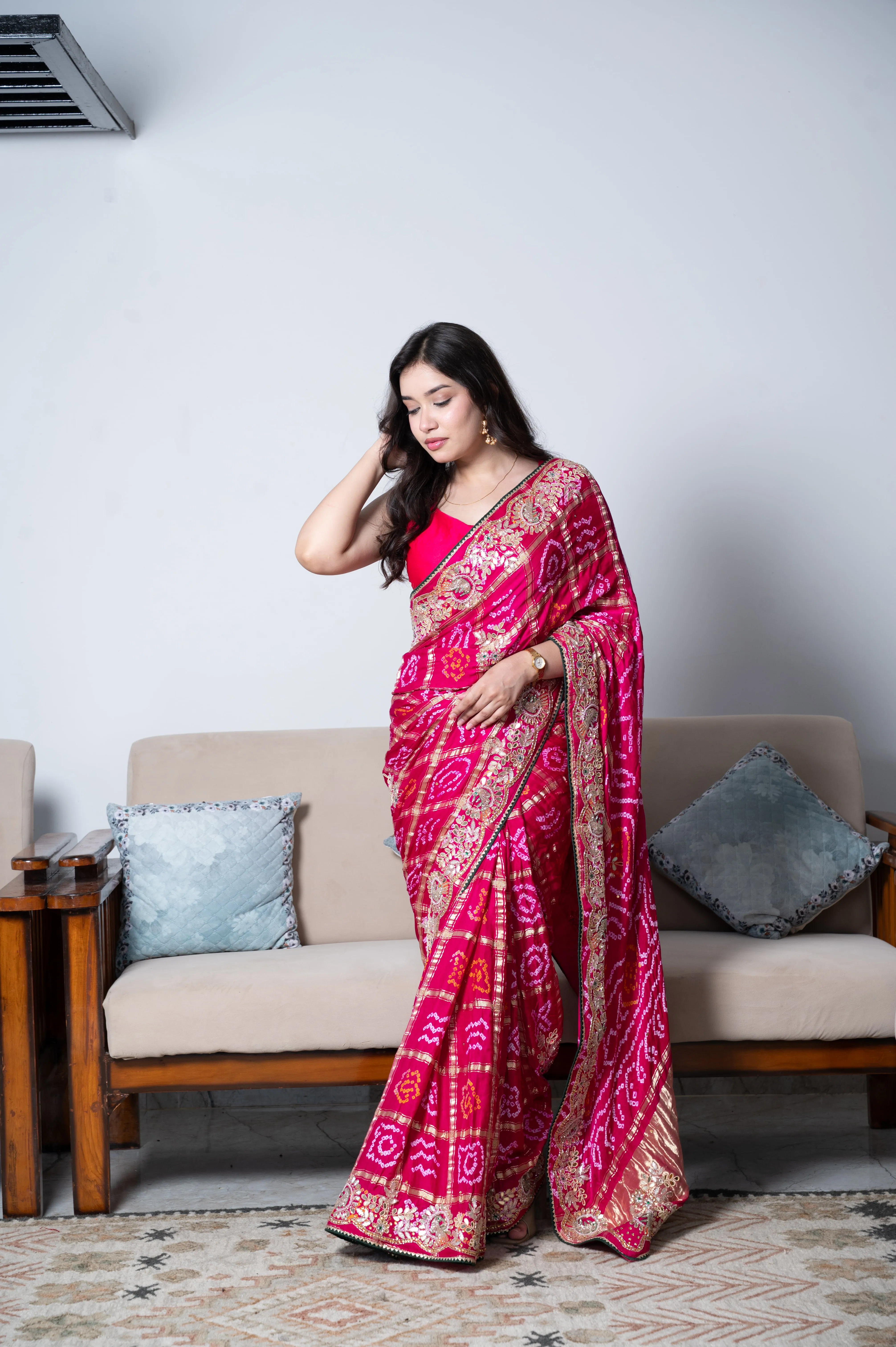 Luxury Pure Gaji Silk Saree with Zardozi Dabka Kundan & Moti Hand Embroidery | Designer Ethnic Wear