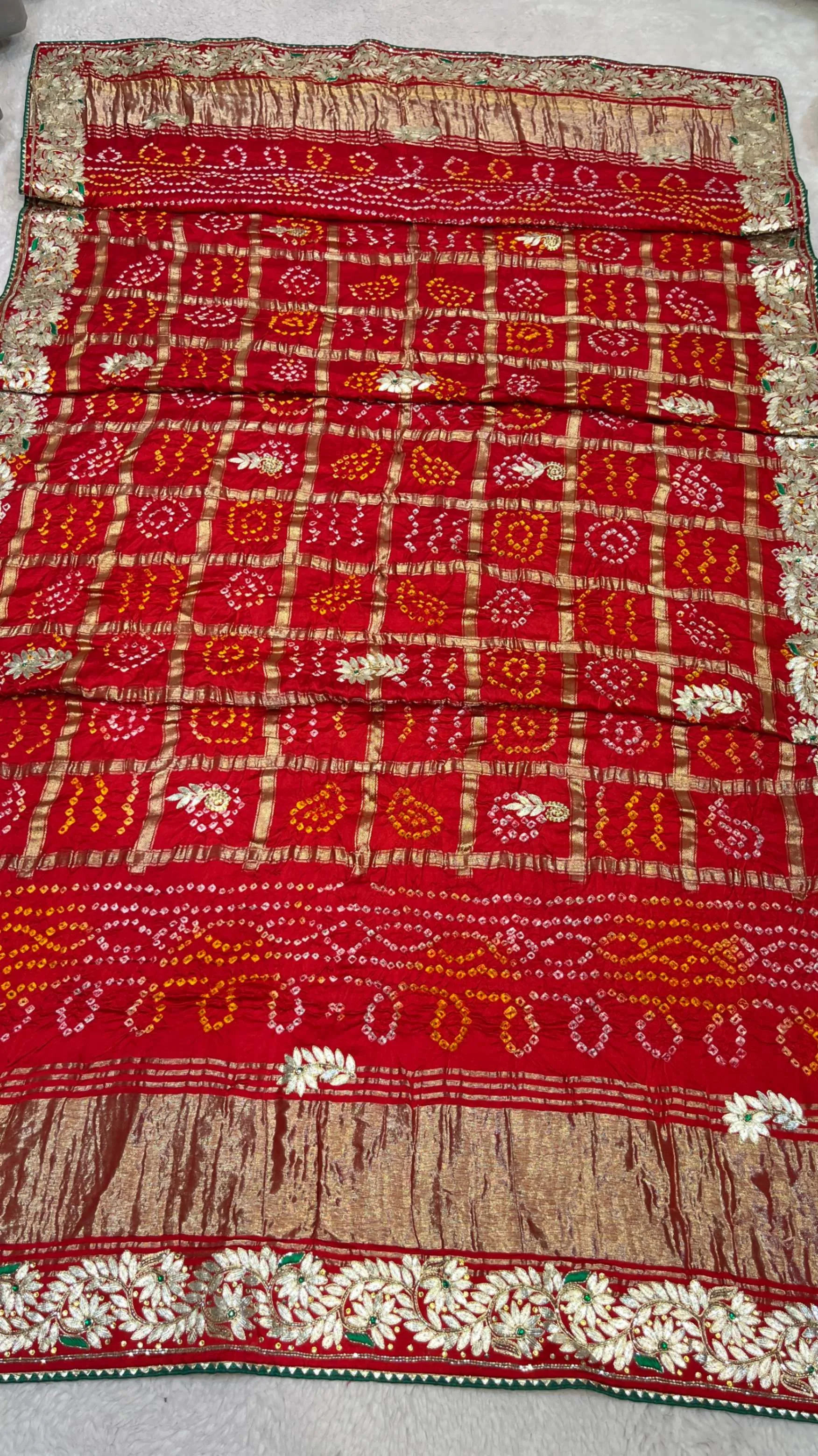 Elevate your ethnic wardrobe with this semi Gazi Meena zari silk dupatta, handcrafted using traditional hand Bandhej techniques that celebrate authentic Rajasthani textile heritage. The silk fabric enriched with Meena zari offers a refined sheen and elegant drape.
