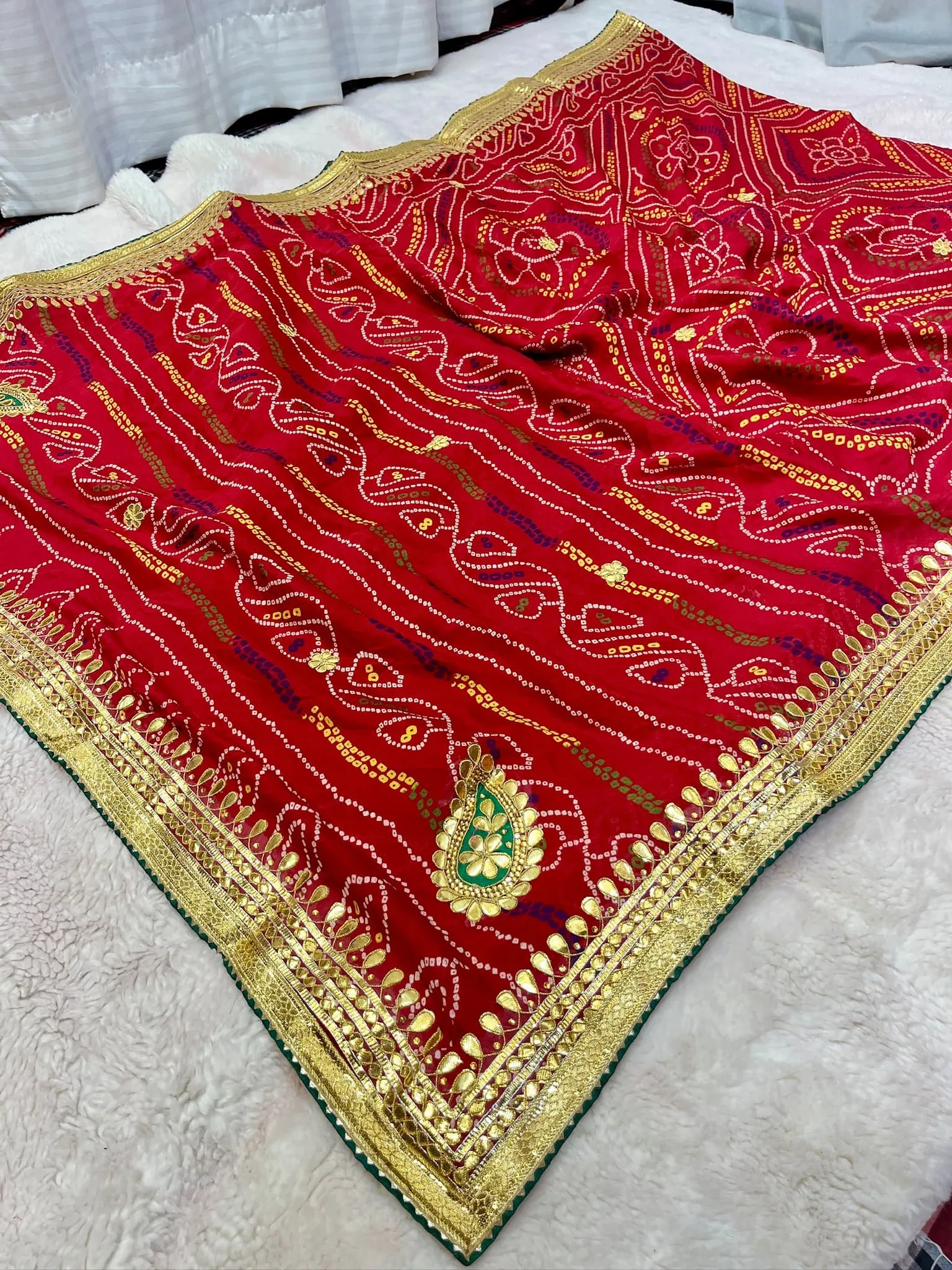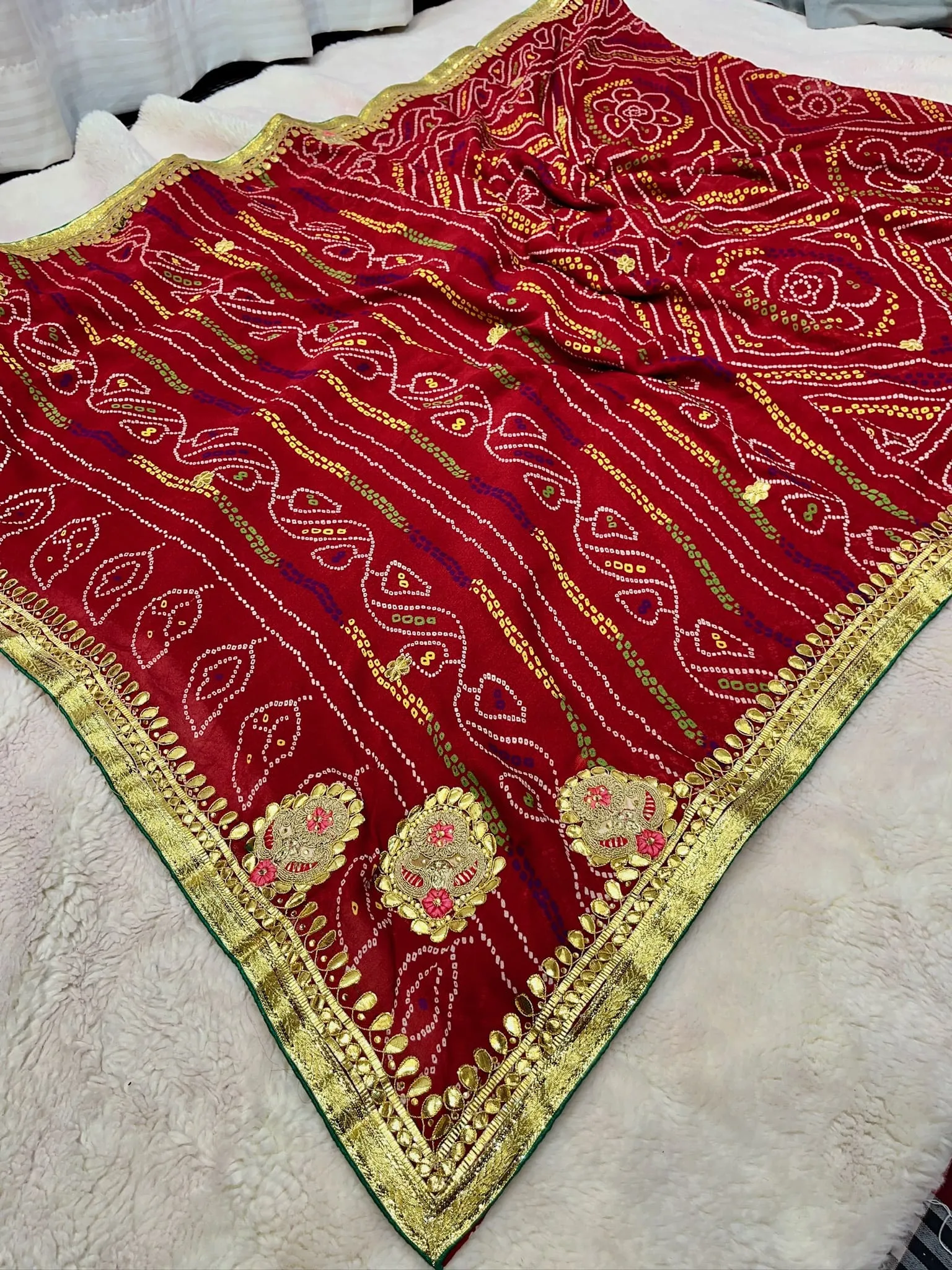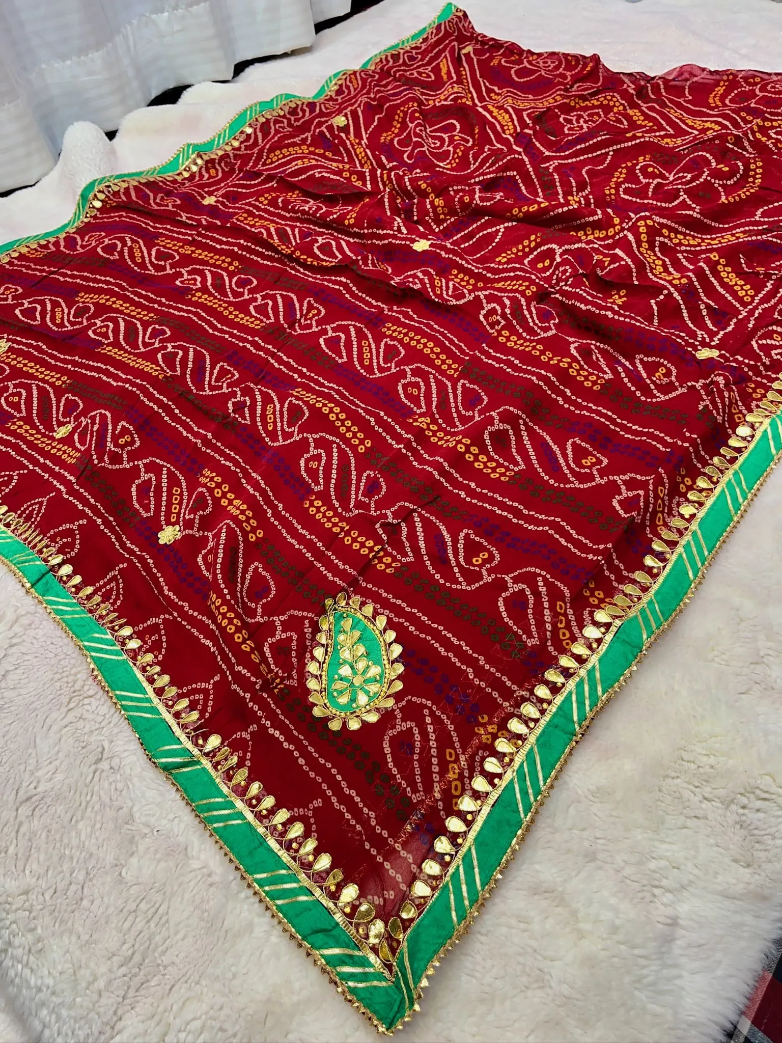 Celebrate timeless Rajasthani elegance with this traditional Bandhej Chunari saree, crafted in premium moss crepe fabric for a smooth drape and lightweight comfort. The vibrant Bandhej patterns reflect authentic heritage styling, making it a classic choice for festive and cultural wear.