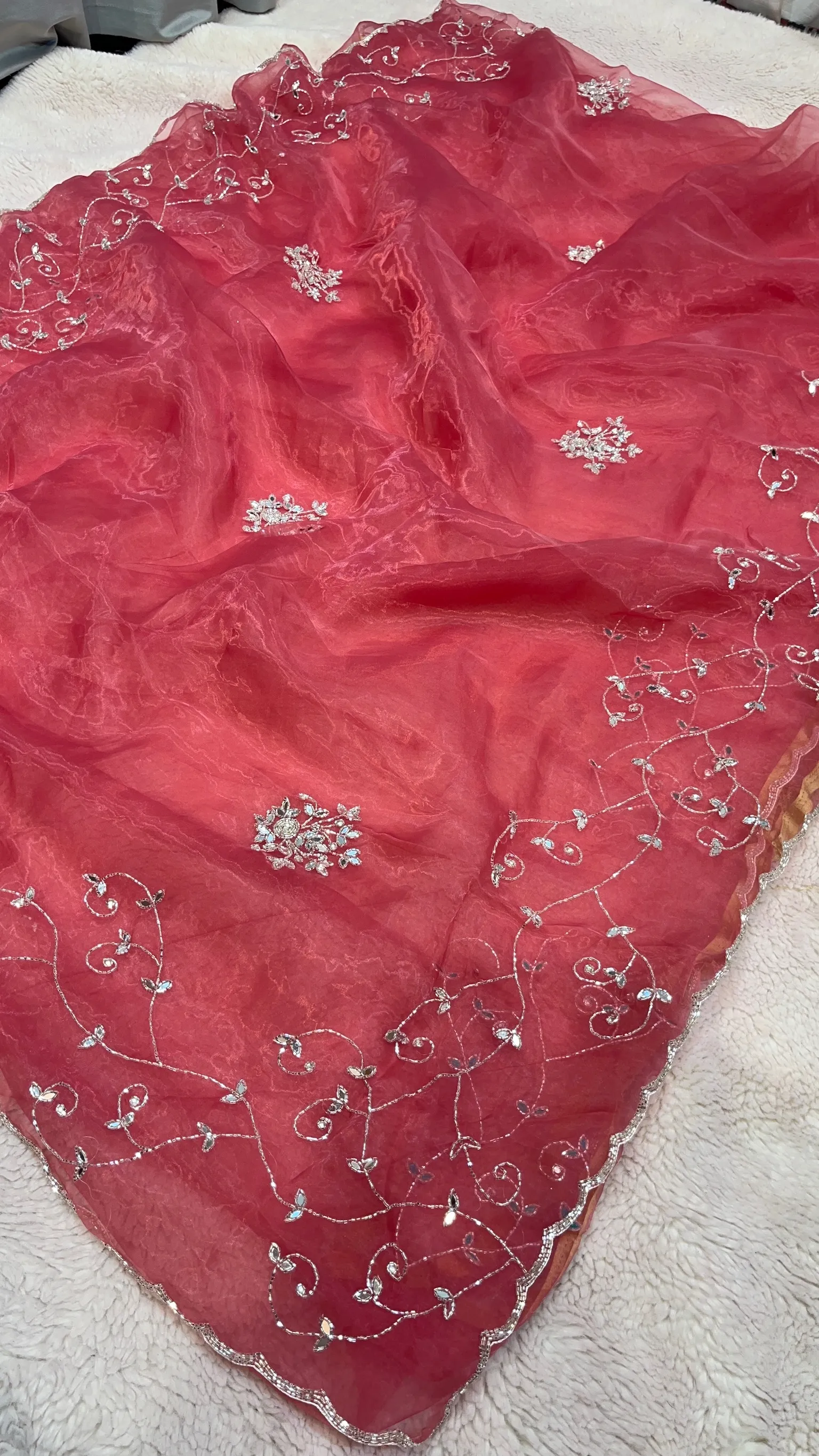 Make a refined style statement with this exclusive designer organza tissue saree, created for women who love elegant shimmer and modern detailing. Crafted from premium organza tissue fabric, this saree features a crisp yet lightweight texture with a delicate sheen that enhances its luxurious appeal.