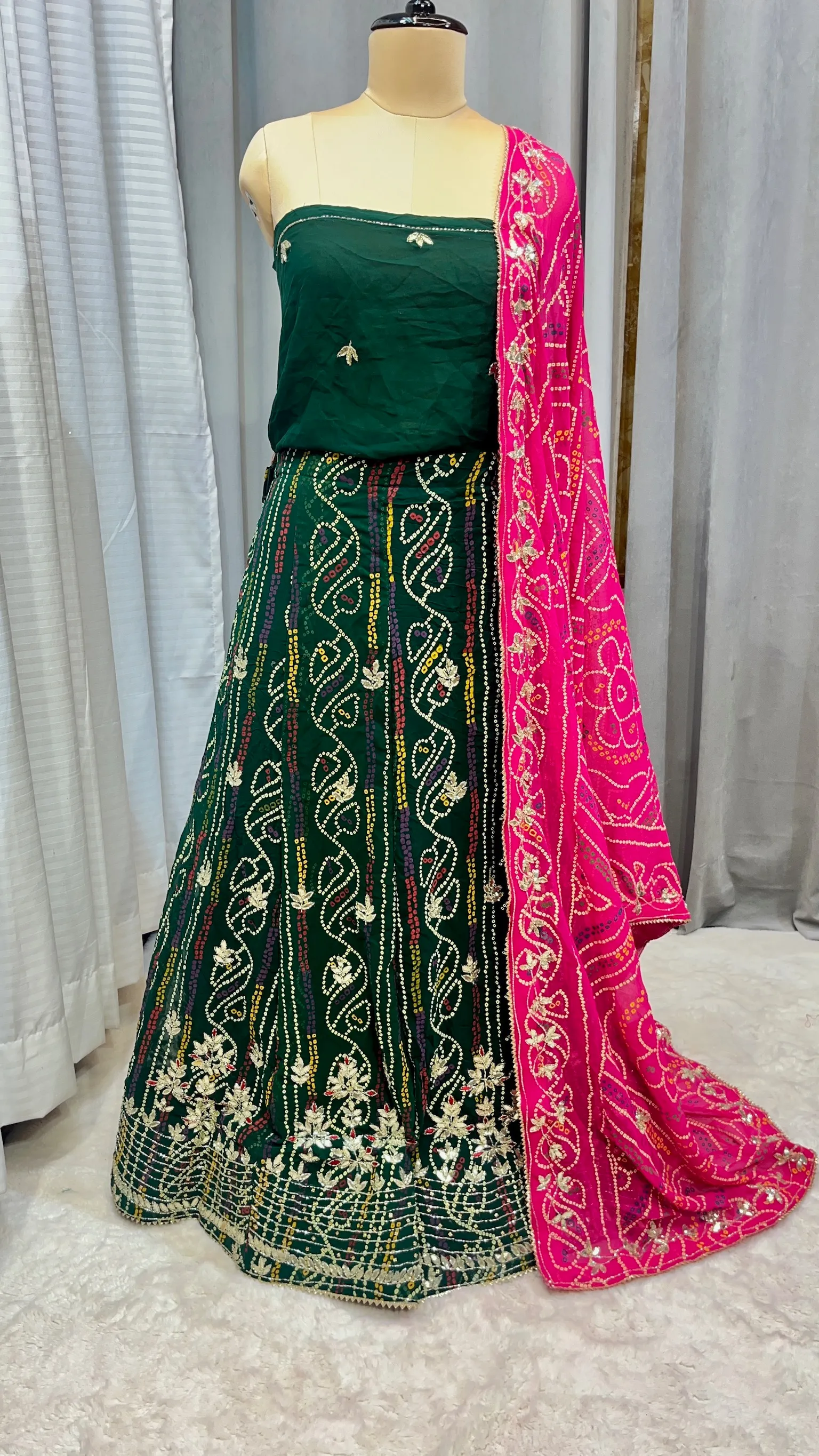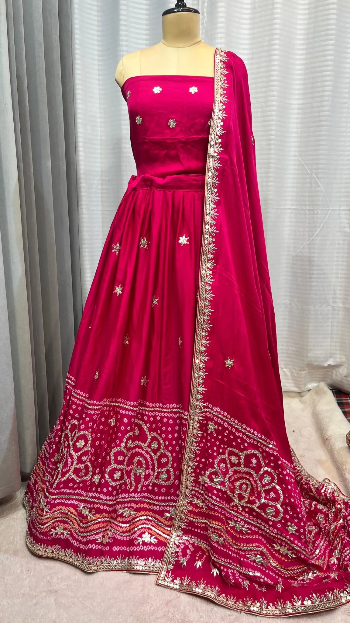 Pure Gaji Silk Lehenga Chunni – Hand Bandhej with Handmade Gotta Patti Work