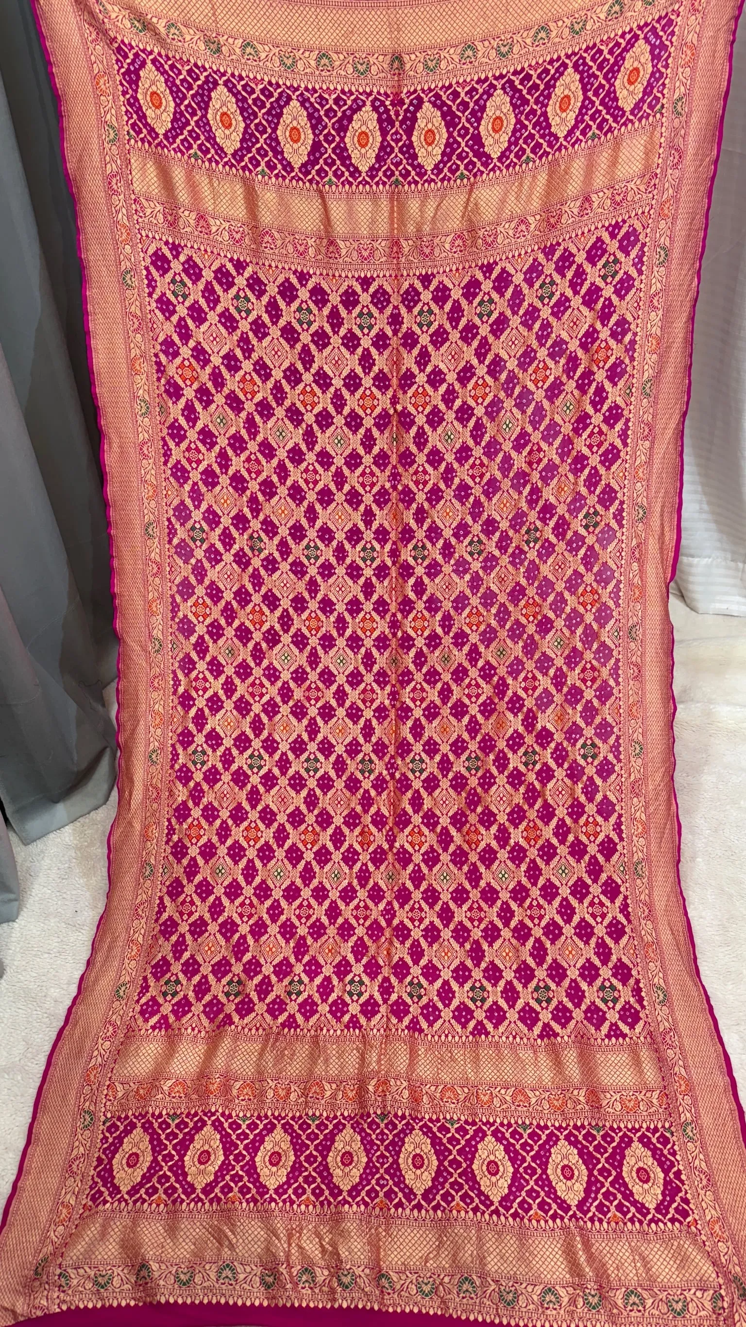 Premium Khadi Georgette Dupatta with Hand Bandhej Meena Zari Work in Two Colours